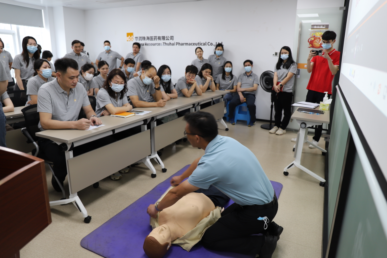 為加強(qiáng)公司的安全生產(chǎn)管理,提高員工的安全意識(shí)和自我保護(hù)能力,2023年華潤(rùn)珠海醫(yī)藥有限公司以“安全生產(chǎn)月”為契機(jī),6月7日,公司組織全體員工舉行消防應(yīng)急演練活動(dòng)。本次活動(dòng)以公司總經(jīng)理為總指揮,設(shè)立搶險(xiǎn)組、警戒組、后勤救護(hù)組等專門小組,分工明確,并邀請(qǐng)專業(yè)的老師作現(xiàn)場(chǎng)消防安全培訓(xùn)及應(yīng)急指導(dǎo)。
