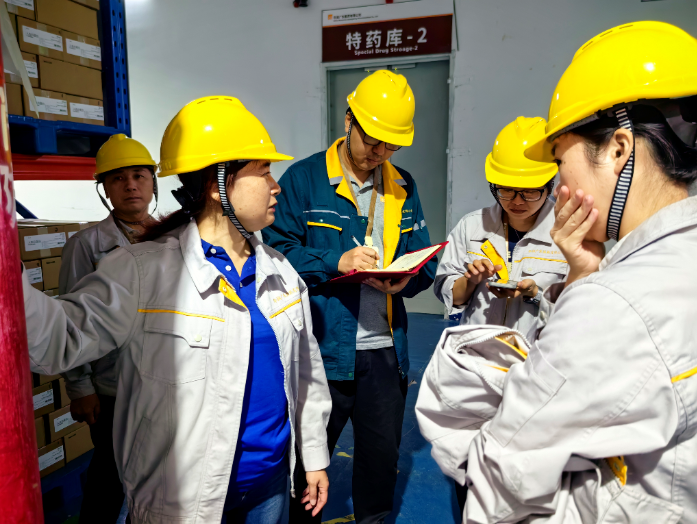 9月27日上午,由華潤廣東醫(yī)藥有限公司(以下簡稱“華潤廣東醫(yī)藥”)總經(jīng)理霍佩瓊帶隊(duì)對物流中心進(jìn)行中秋國慶節(jié)前安全大檢查,物流部相關(guān)領(lǐng)導(dǎo)、EHS部陪同檢查。