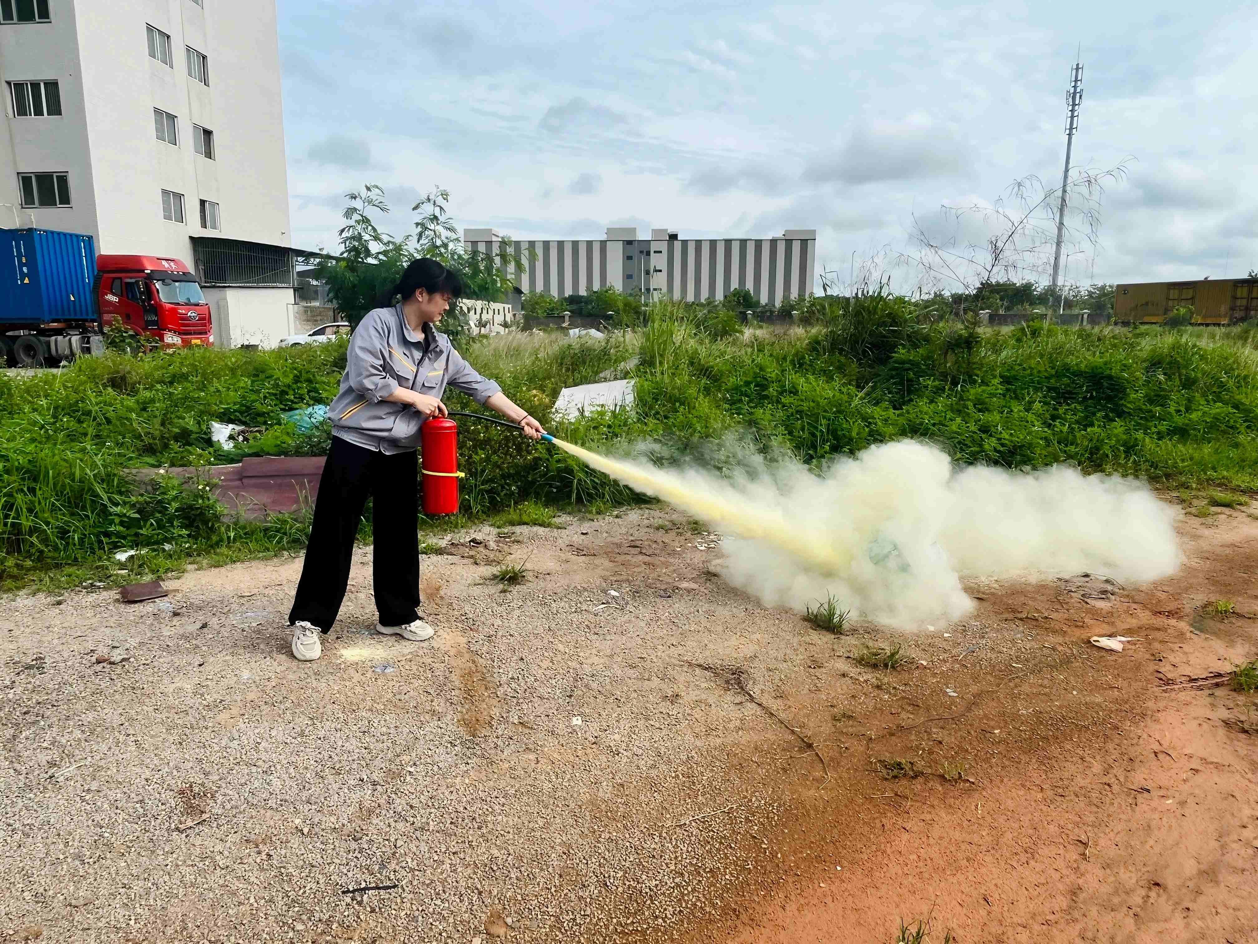 在疏散小組的指揮下,全體員工迅速、有序地撤離到倉庫外物流園一樓的空地上。整個(gè)疏散過程緊張有序,達(dá)到了預(yù)期效果。在實(shí)操技能體驗(yàn)環(huán)節(jié),采用了互動式體驗(yàn)的方式,由質(zhì)量部介紹滅火器的種類、適用范圍和正確使用方法以及消防面罩的結(jié)構(gòu)、功能及佩戴方法。員工們輪流操作干粉滅火器,成功撲滅模擬火源,確保每位職工都能掌握基礎(chǔ)消防器材的使用技巧。