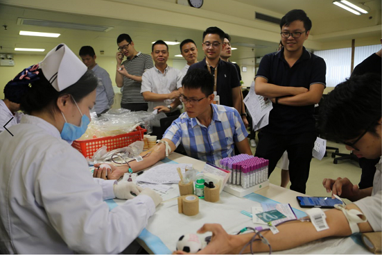 2019年5月10日,“凝心聚力 志愿同行”五四無(wú)償獻(xiàn)血活動(dòng),在華潤(rùn)廣東醫(yī)藥有限公司順利舉行。此次活動(dòng)由廣州血液中心的醫(yī)務(wù)人員們提供獻(xiàn)血服務(wù)支持,共有57位同事成功獻(xiàn)血,合共采集血液15600毫升。