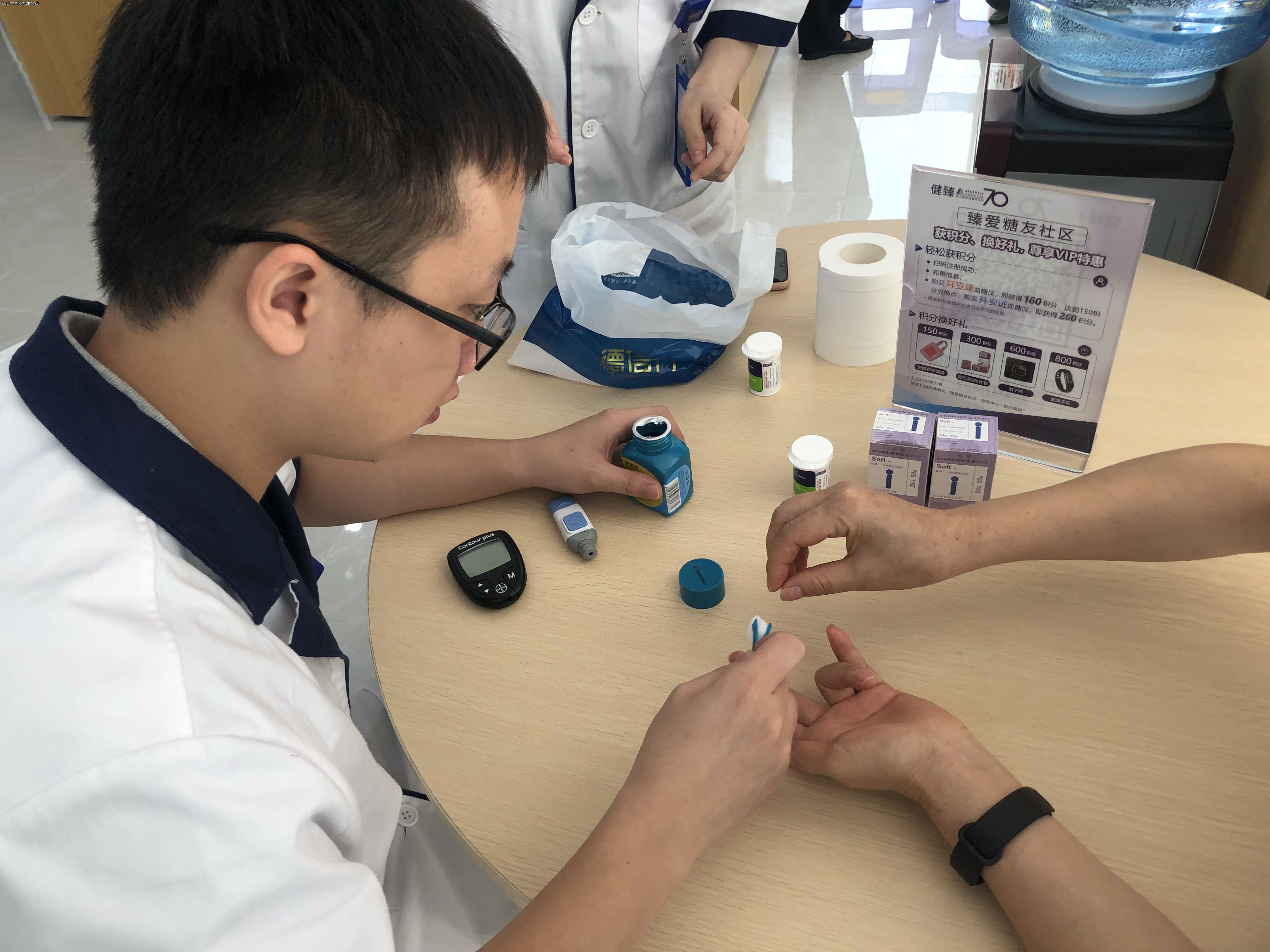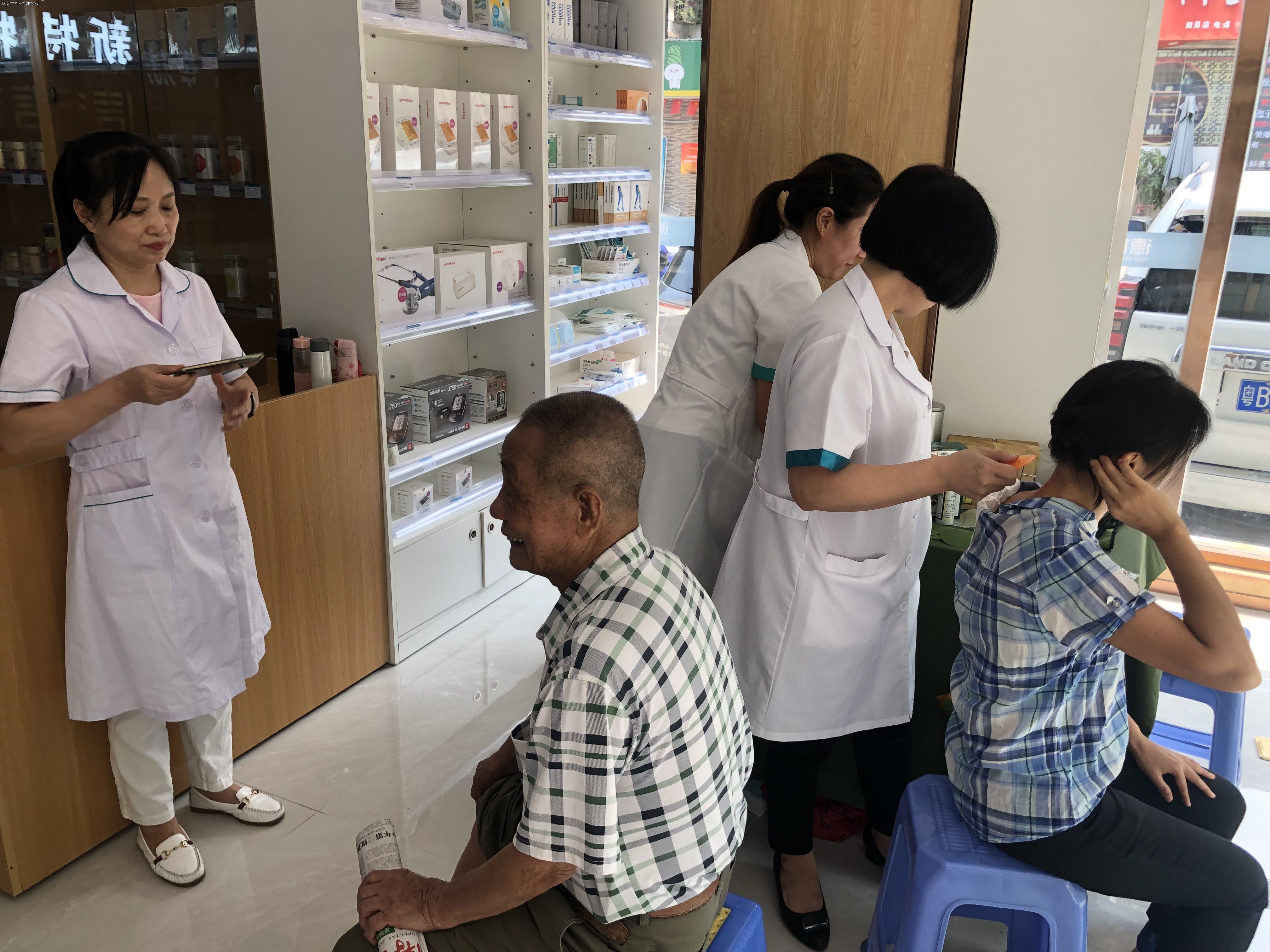 活動當日,藥店內(nèi)設置了潤•YAO行動-愛心服務站”,分為免費測血糖及免費艾灸理療兩個區(qū)域,店內(nèi)執(zhí)業(yè)藥師利用血糖儀為客人測量血糖,并根據(jù)檢測結果給予專業(yè)藥學建議。理療師則負責肩頸腰腿不適的客人針對其患處進行艾灸理療。此次活動獲得了周邊街坊廣泛好評,到店客人可根據(jù)自身需要選擇相應服務