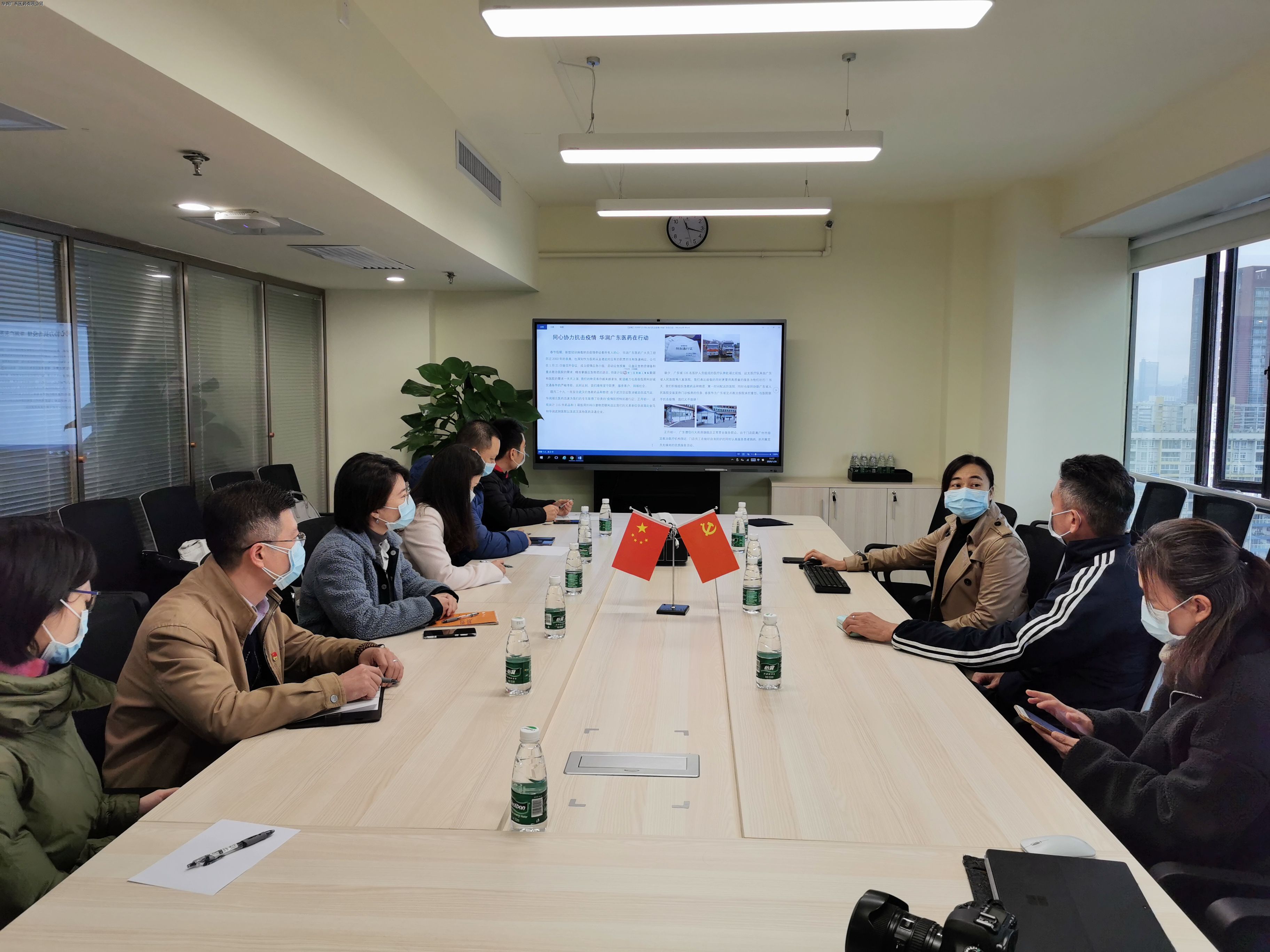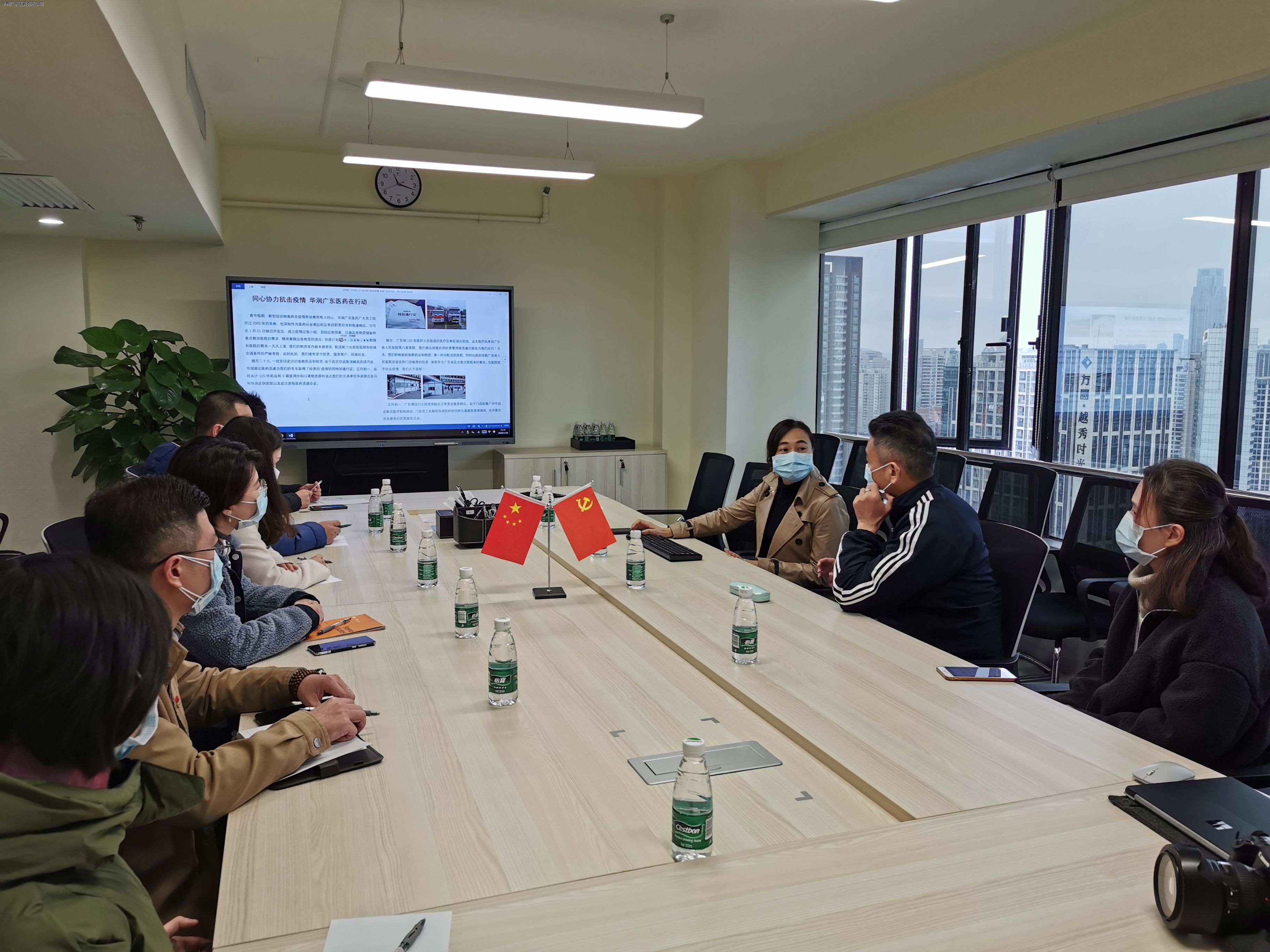 霍總向韓總匯報了華潤廣東醫(yī)藥春節(jié)期間疫情應(yīng)急工作的整體部署情況。應(yīng)急小組成員明確職責(zé)分工,每日盤點(diǎn)和集中調(diào)配藥品和器械物資,急速響應(yīng)客戶的緊急需求,并按照華潤醫(yī)藥商業(yè)集團(tuán)以及廣東省醫(yī)保局的統(tǒng)一指令,做好全省平臺的應(yīng)急統(tǒng)籌工作。