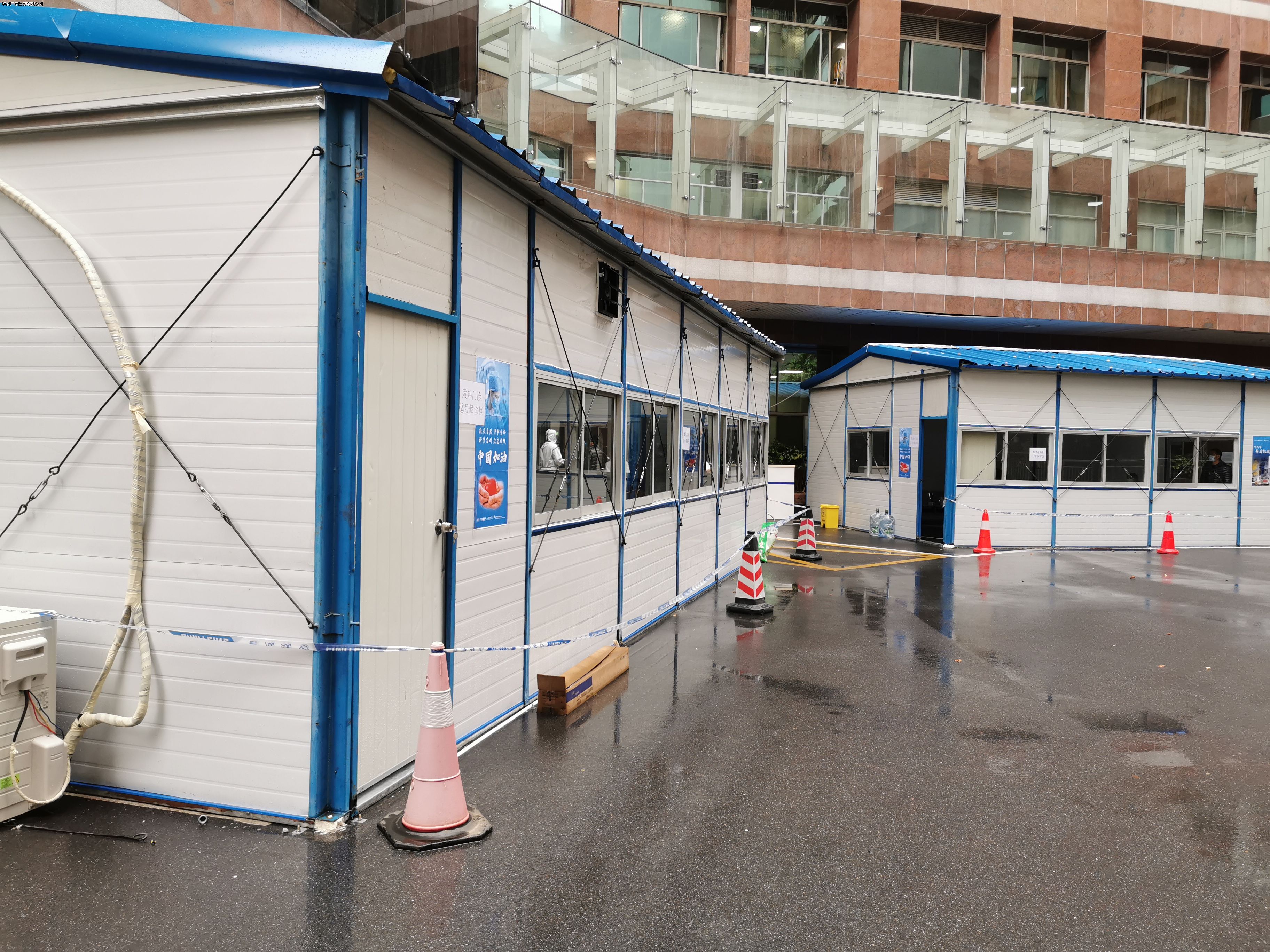 隨后,韓總還視察了公司協(xié)助廣東省人民醫(yī)院搭建的發(fā)熱門診板房。廣東省人民醫(yī)院作為廣東省級新型冠狀病毒感染肺炎的定點(diǎn)救治醫(yī)院,所有醫(yī)務(wù)人員已投入緊張的病患救治中。為做好病毒感染的防控工作,降低就診患者的院感風(fēng)險,公司與醫(yī)院通力協(xié)作,在不到48小時內(nèi),搭建完成兩座100平米并配備空調(diào)和空氣消毒機(jī)的發(fā)熱門診板房。華潤廣東醫(yī)藥與醫(yī)院一起,并肩抗擊疫情。