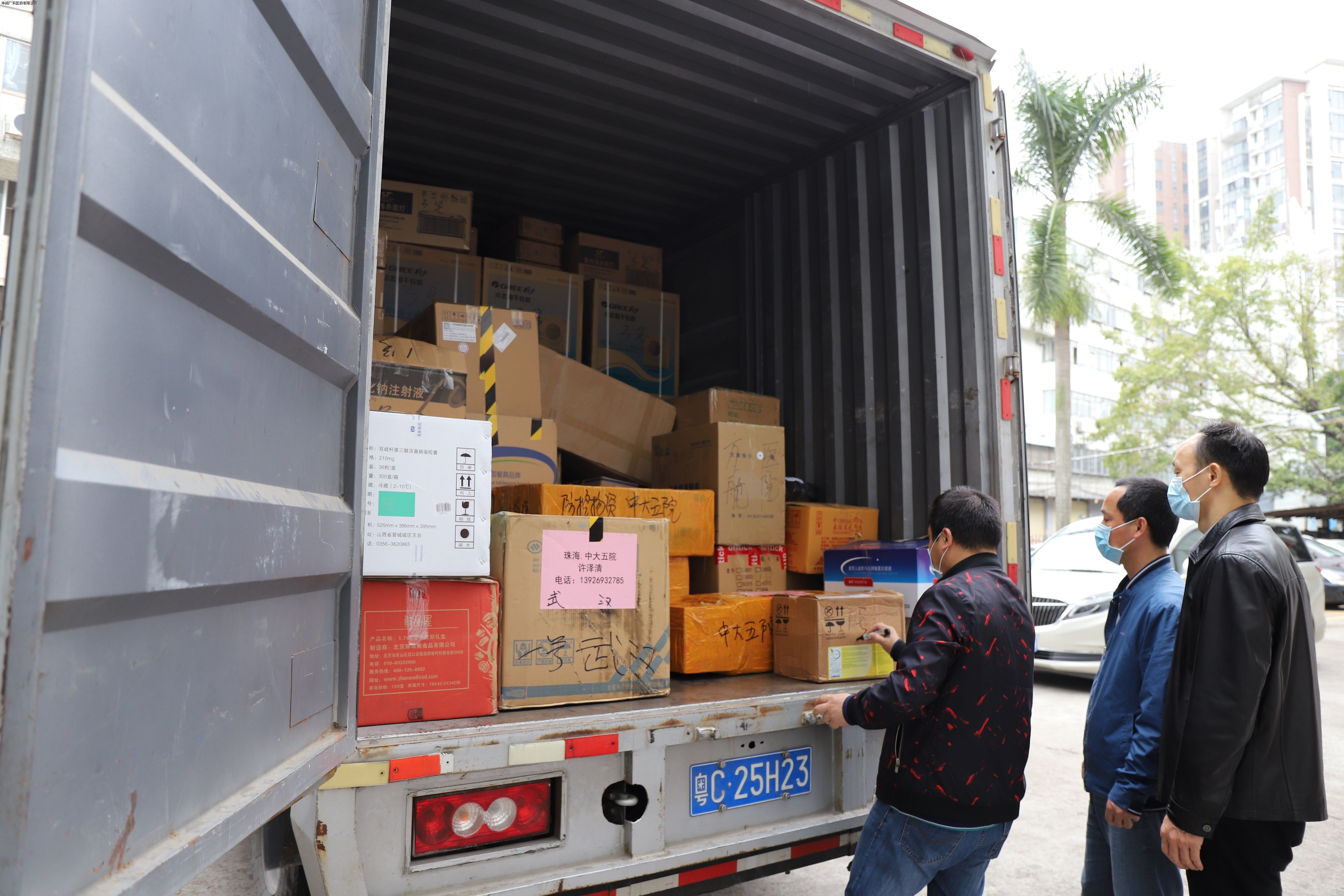 2月14日全天,醫(yī)療器械部負(fù)責(zé)人梁服泉書(shū)記緊急長(zhǎng)途采購(gòu)提貨;晚上23時(shí)00分,物資迅速打包封箱;凌晨24時(shí)整物資整齊裝車。2月15日上午8時(shí)30分,華潤(rùn)珠海醫(yī)藥管理團(tuán)隊(duì)及黨支部書(shū)記仔細(xì)檢查車輛及人員防護(hù)狀況;醫(yī)療器械部、物流管理部認(rèn)真核對(duì)物資及運(yùn)輸路線,華潤(rùn)珠海醫(yī)藥物流司機(jī)陳樹(shù)森、李宏彬佩戴口罩、一次性手套,隨身攜帶防護(hù)服、護(hù)目鏡、免洗消毒液等發(fā)車前往1000公里外的湖北省邊境。