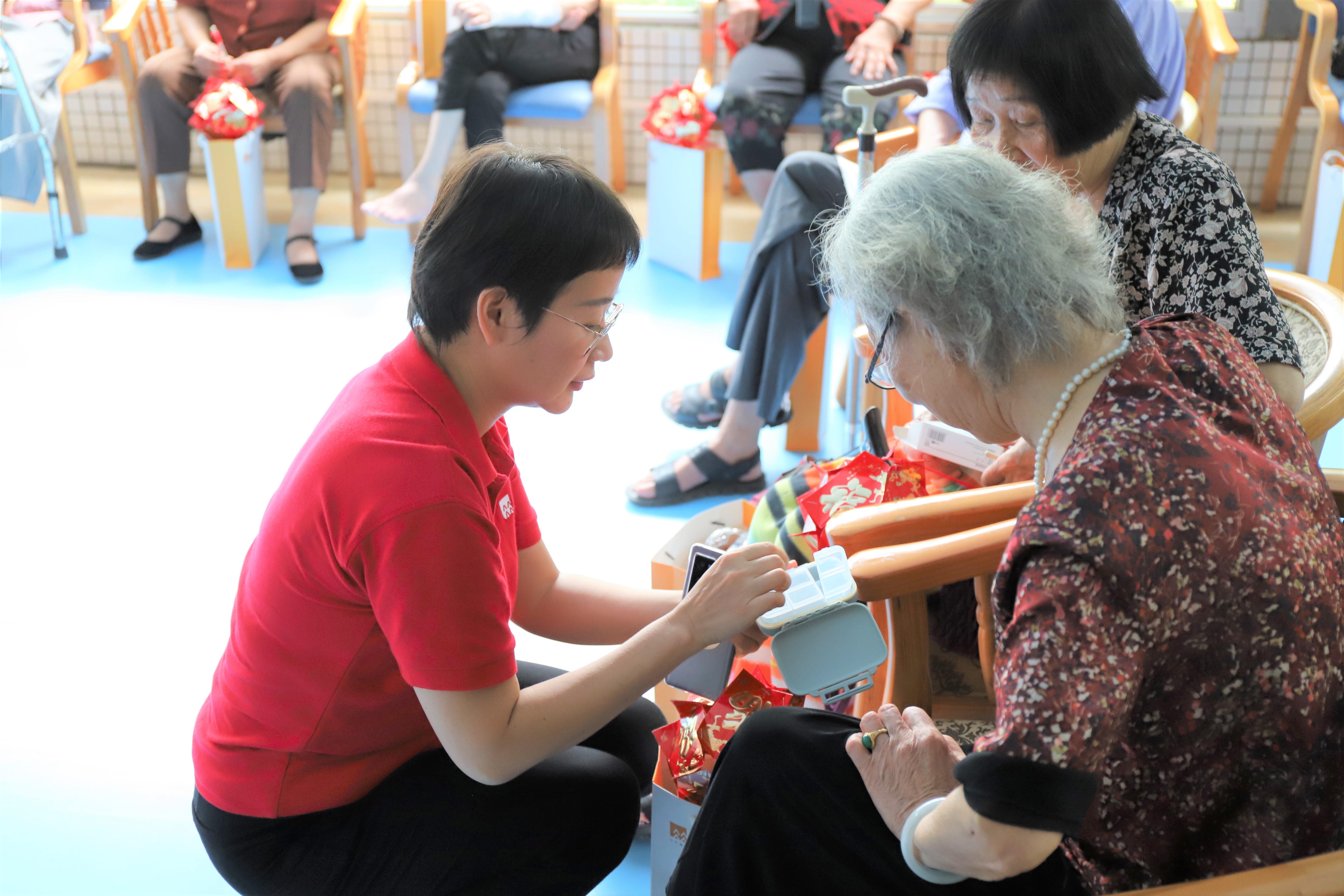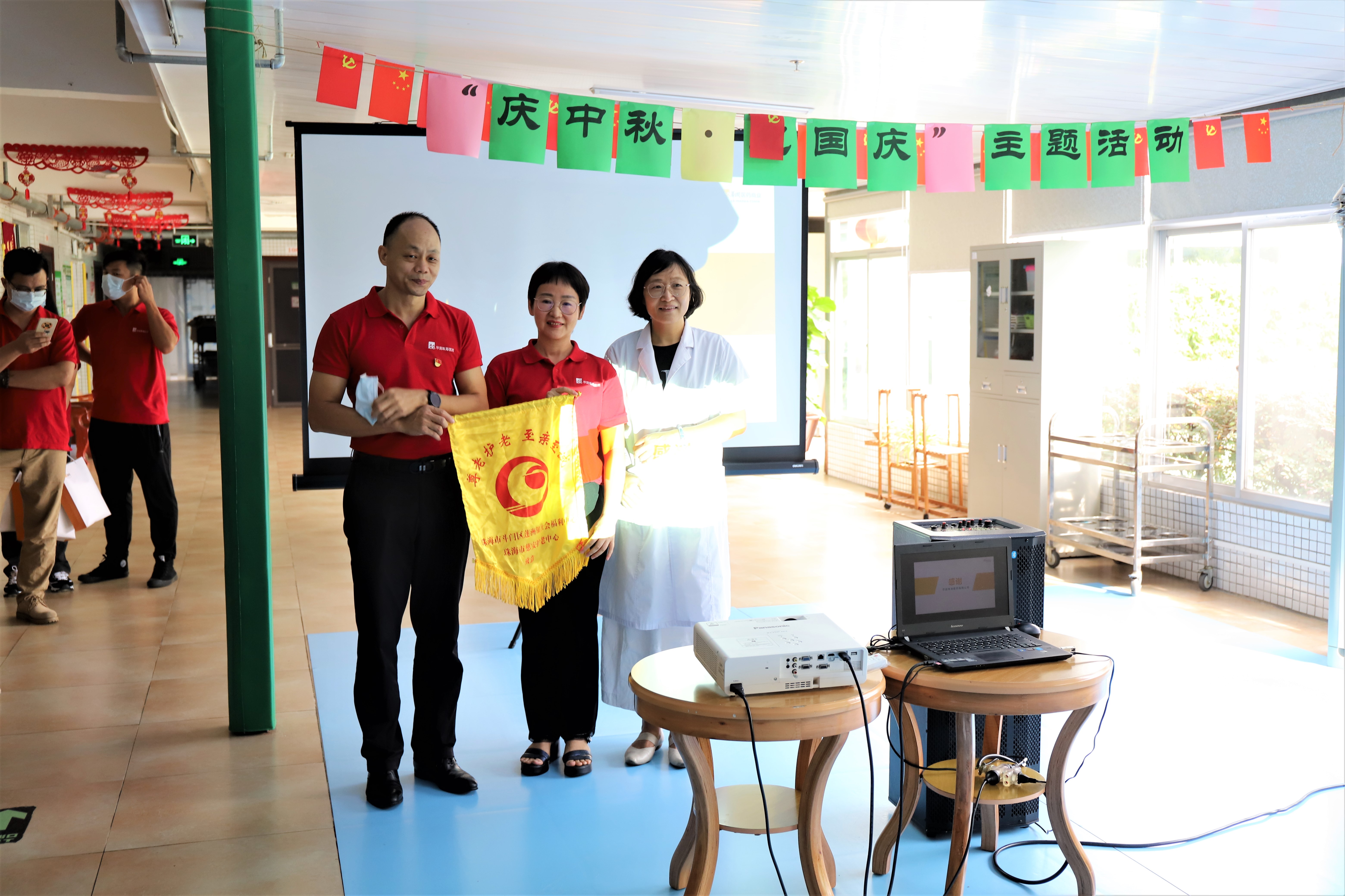 歷經(jīng)50分鐘的車程,我們到達(dá)預(yù)定的活動(dòng)第二目的地——珠海市容永道養(yǎng)老院?;顒?dòng)開始時(shí),公司工會(huì)委員會(huì)葉主席帶來華潤(rùn)集團(tuán)的發(fā)展歷程及華潤(rùn)珠海醫(yī)藥有限公司的介紹,講述紅色文化基因下,華潤(rùn)珠海醫(yī)藥踐行社會(huì)責(zé)任的使命與擔(dān)當(dāng)?,F(xiàn)場(chǎng)容永道養(yǎng)老院梁院長(zhǎng)為本次愛老、敬老、助老活動(dòng)贈(zèng)旗致意,對(duì)本次活動(dòng)表示肯定和支持。