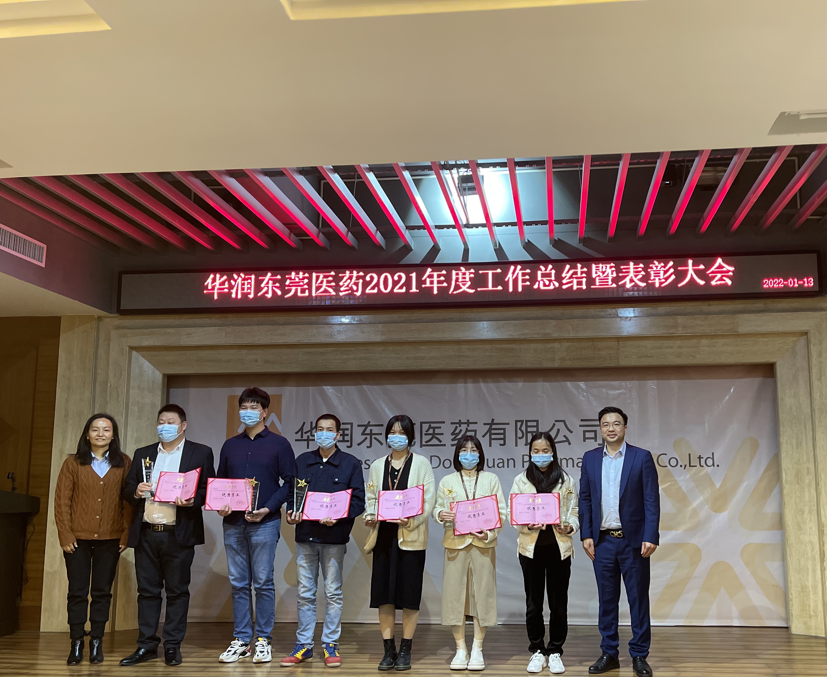 在工作匯報(bào)環(huán)節(jié)結(jié)束后,公司對(duì)2021年度抗疫貢獻(xiàn)突出的2名員工,業(yè)務(wù)貢獻(xiàn)突出的1名員工及工作表現(xiàn)優(yōu)秀的6名員工進(jìn)行了表彰,號(hào)召員工向先進(jìn)個(gè)人看齊,在新一年中再接再厲,超越自我。